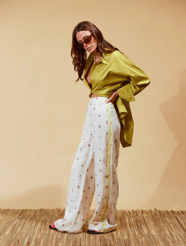 Soleil Soleil // Ecru Embroidered Fellow Cameron Pants